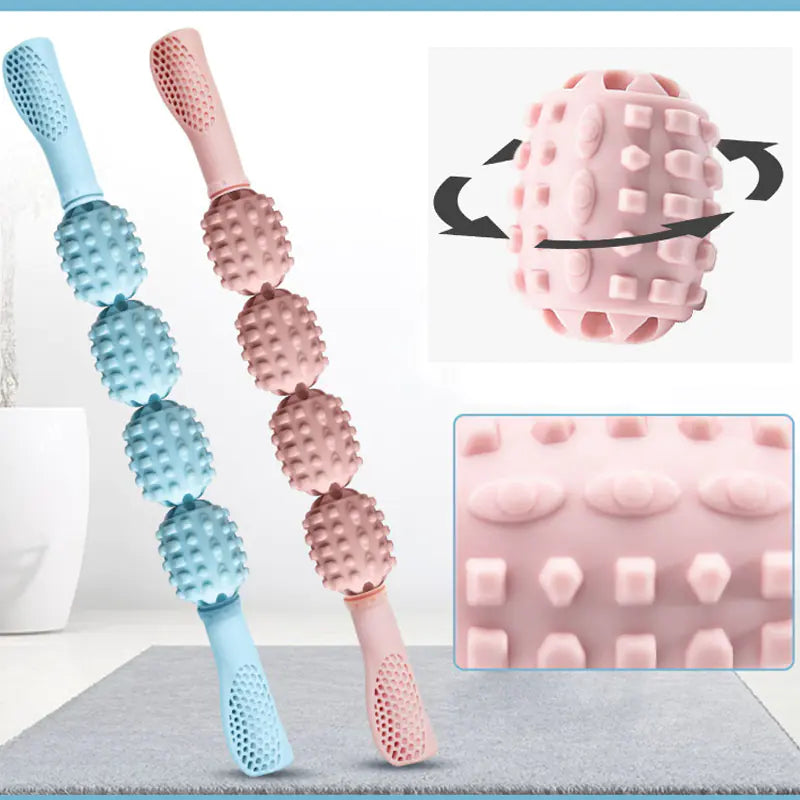 מקל עיסוי יוגה עם ארבעה גלילים להרפיית שרירי הרגליים