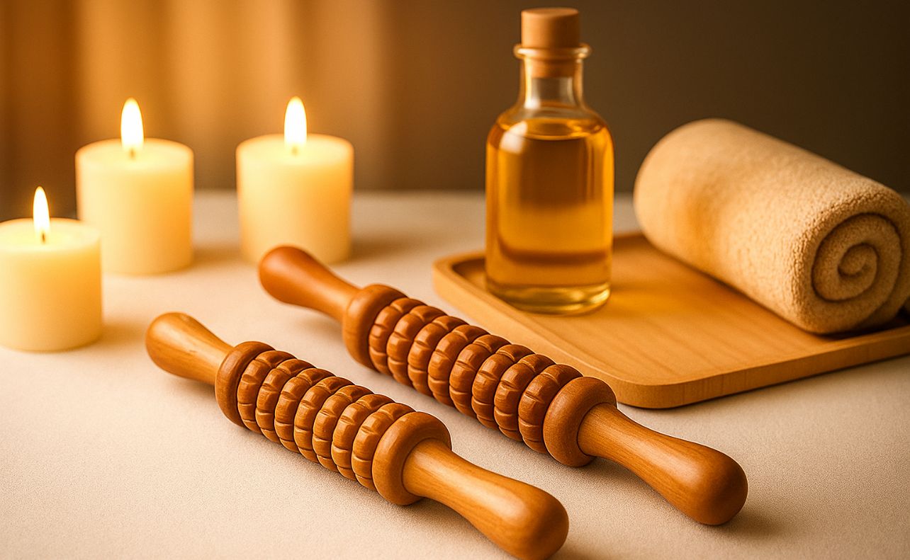 מקל עיסוי יוגה עם ארבעה גלילים להרפיית שרירי הרגליים